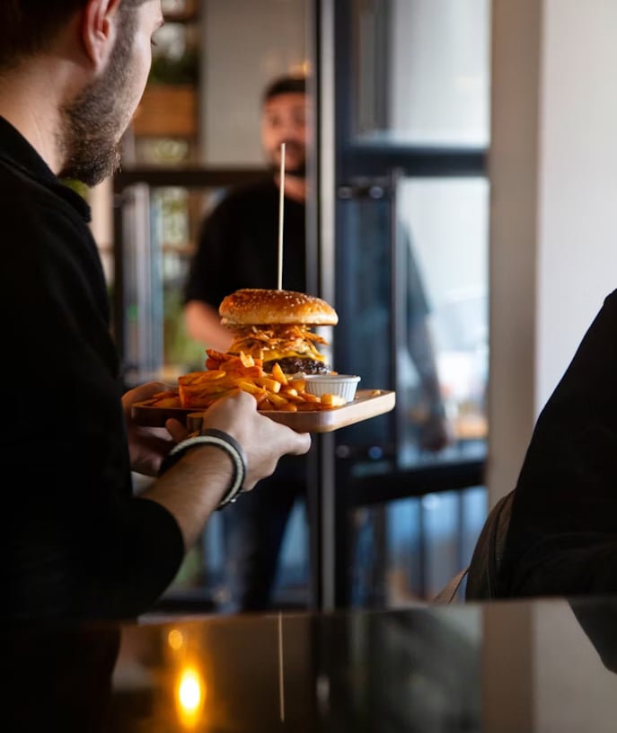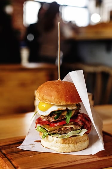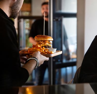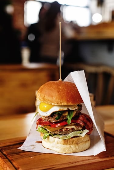 Hamburguesería moderna que fusiona la opulencia y estilo de la burguesía medieval con la frescura y velocidad de la comida rápida actual. El concepto gira en torno a la ironía y el humor, con un enfoque especial en el contraste entre el lujo y la realidad económica de la clase media, ofreciendo comida exquisita a precios asequibles.
